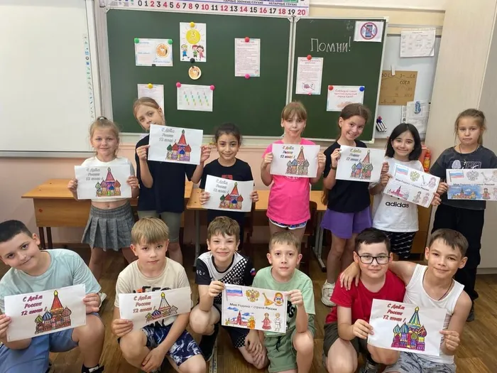 После завтрака мальчишки и девчонки прошли интересную викторину "Россия - Родина моя", которая помогла им вспомнить символы РФ, деятелей науки и культуры. Ребята первого и второго отрядов устроили конкурс рисунков о России и сделали выставку.