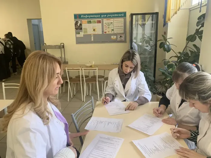 Инициативная группа родителей учащихся начальных классов 3 «А» класса Дорошенко Ирина Васильевна, Перепелицына Елена Васильевна, 3 «Б» класса Темирова Екатерина Владимировна, 3 «В» класса Гасанова Лейла Нусретовна посетили школьную столовую.