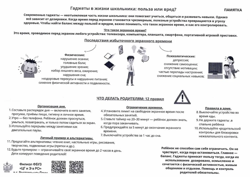 Памятка «Гаджеты в жизни школьника: польза или вред?»