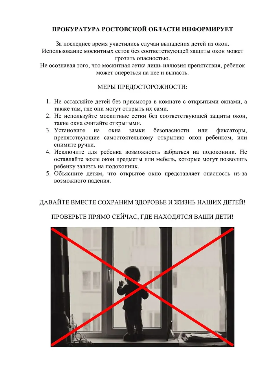 Не оставляйте детей без присмотра в комнате с открытыми окнами!!!